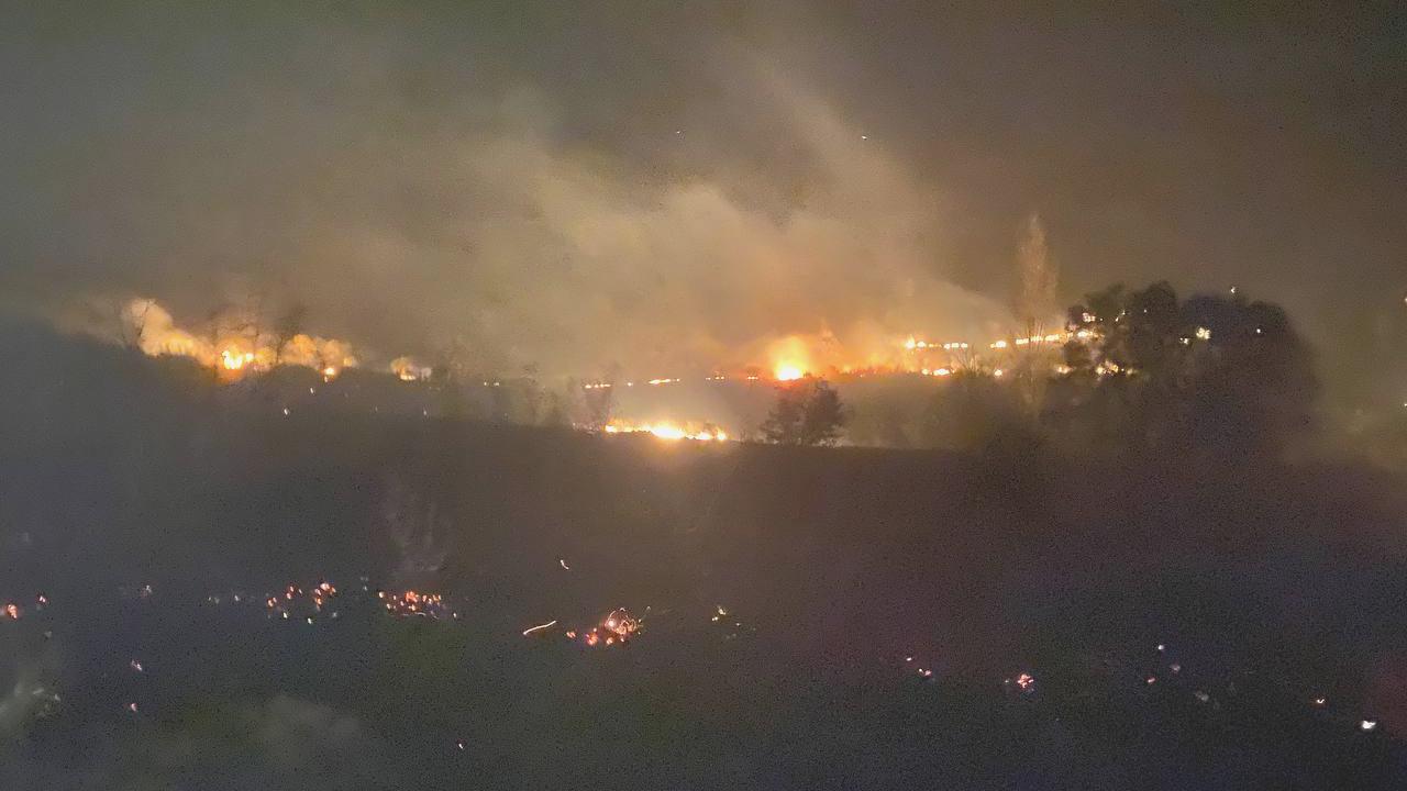 Kuvvetli rüzgarın tesirli olduğu bölgede takımların yangına müdahalesi sürüyor.