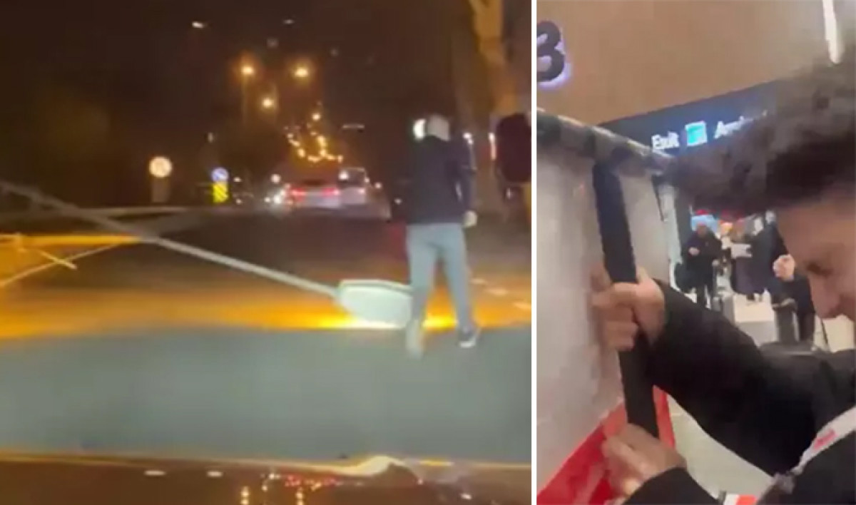 Akşam saatlerinde etkisini arttıran fırtına, İstanbul Havalimanı’nda da etkili oldu. Yolcuların rüzgar nedeniyle uçan reklam panolarına tutunduğu anlar çevredeki kişiler tarafından cep telefonuyla kaydedildi.