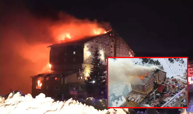 Türkiye’nin önemli kayak merkezlerinden 2 bin 200 rakımlı Kartalkaya’da bir otelde saat 03.30 sıralarında yangın çıktı. 12 katlı ahşap otelde restoran bölümünde başladığı belirlenen yangında alevler hızla yayıldı. Sömestir tatili nedeniyle doluluk oranının yüzde 80-90 oranında olduğu belirtilen, 237 kişinin konakladığı otelde alevlerin fark edilmesiyle 112 Acil Çağrı Merkezi’ne haber verilirken, personel de konukların tahliye edilmesi için zamana karşı mücadele başlattı. Can pazarının yaşandığı yangında uykularından fırlayan tatilciler hızla oteli tahliye etmeye başladı.