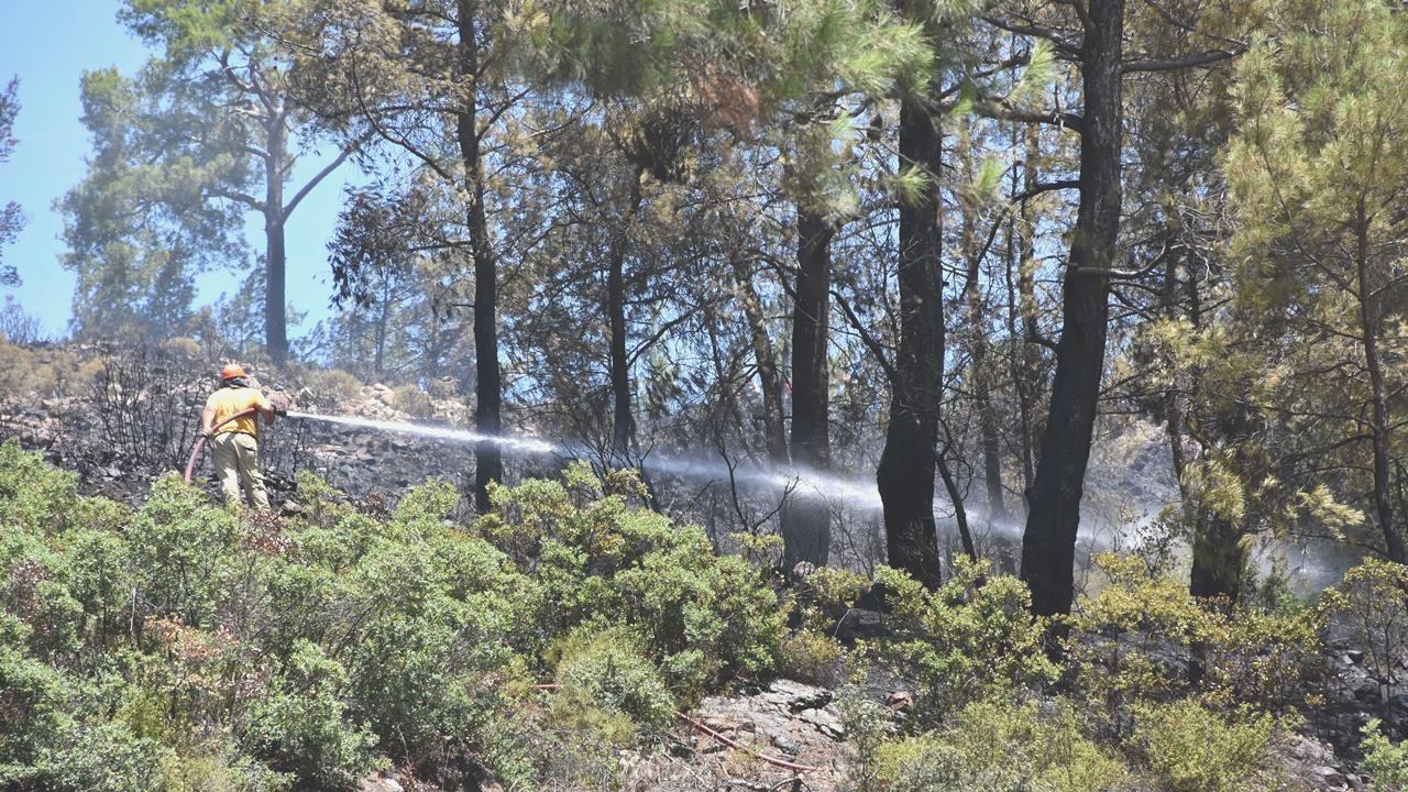 Muğla Orman Bölge Müdürlüğüne bağlı 6 uçak, 9 helikopter 15 arazöz ve çok sayıda orman yangını söndürme grupları alevlere, karadan ve havadan müdahale etti.