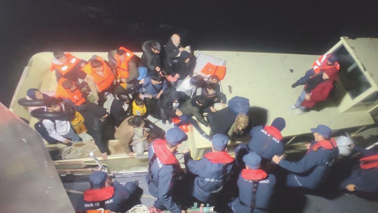 Ekiplerce, hareketli lastik bot durdurularak yasa dışı yollarla yurt dışına geçmeye çalışan 32 sistemsiz göçmen yakalandı.