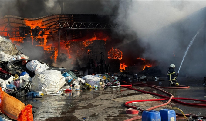 İlçedeki Organize Sanayi Bölgesi’nde yer alan bir geri dönüşüm tesisinde, henüz belirlenemeyen nedenle yangın çıktı.