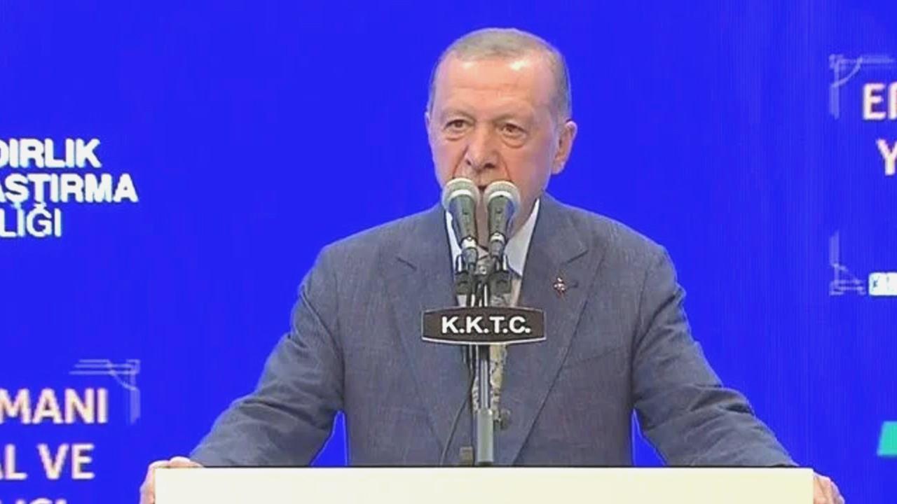 KKTC’de Yeni Ercan Havalimanı’nın açılışında konuşan Cumhurbaşkanı Erdoğan, “Kıbrıs Adası’nda tahakkümü, gerginliği ve çatışma kültürünü değil eşit iki devletin yan yana, birlikte yaşama ülküsünü destekleyin, çağrımı yineliyorum” dedi.